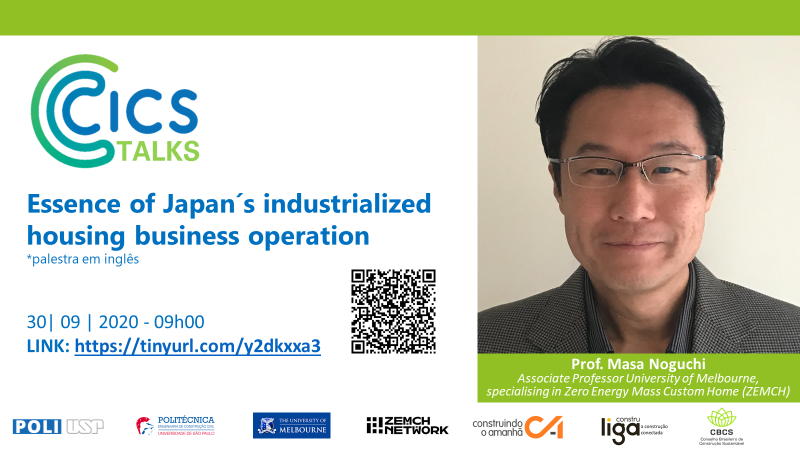 Nesteencontro virtual,o Prof. Masa Noguchi irá apresentar a experiência com a construção industrializada de habitações no Japão.