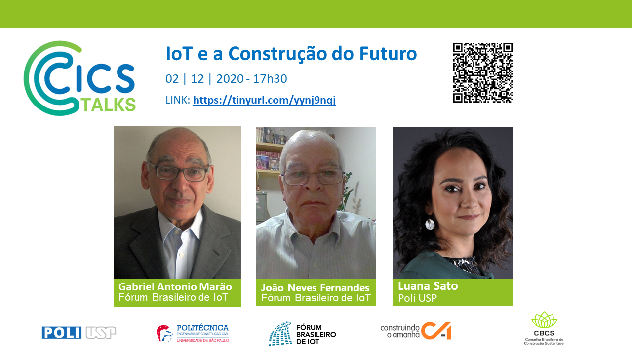 Com inscrições gratuitas abertas ao público e vagas limitadas, o novo episódio da série CICS TALKS traz como palestrante convidado os engenheiros Gabriel Marão, presidente do Fórum Brasileiro de Internet da Coisas e Arq. Luana Sato, Doutoranda pela Poli USP.