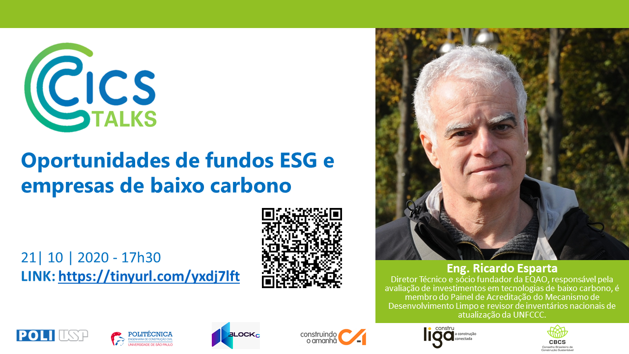 “OPORTUNIDADES DE FUNDOS ESG E EMPRESAS DE BAIXO CARBONO” é o tema do próximo CICS TALKS, evento online que acontecerá quarta-feira, dia 21 de outubro, às 17h30.