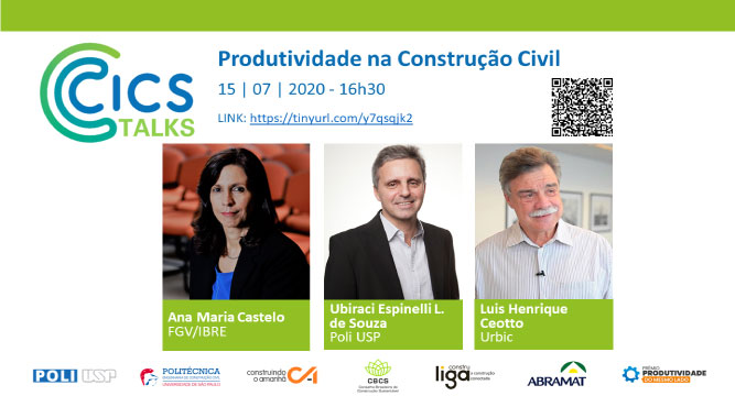 Produtividade na Construção Civilé o tema do próximo CICS TALKS que acontecerá no dia15 de julho, quarta-feira às 16h30.